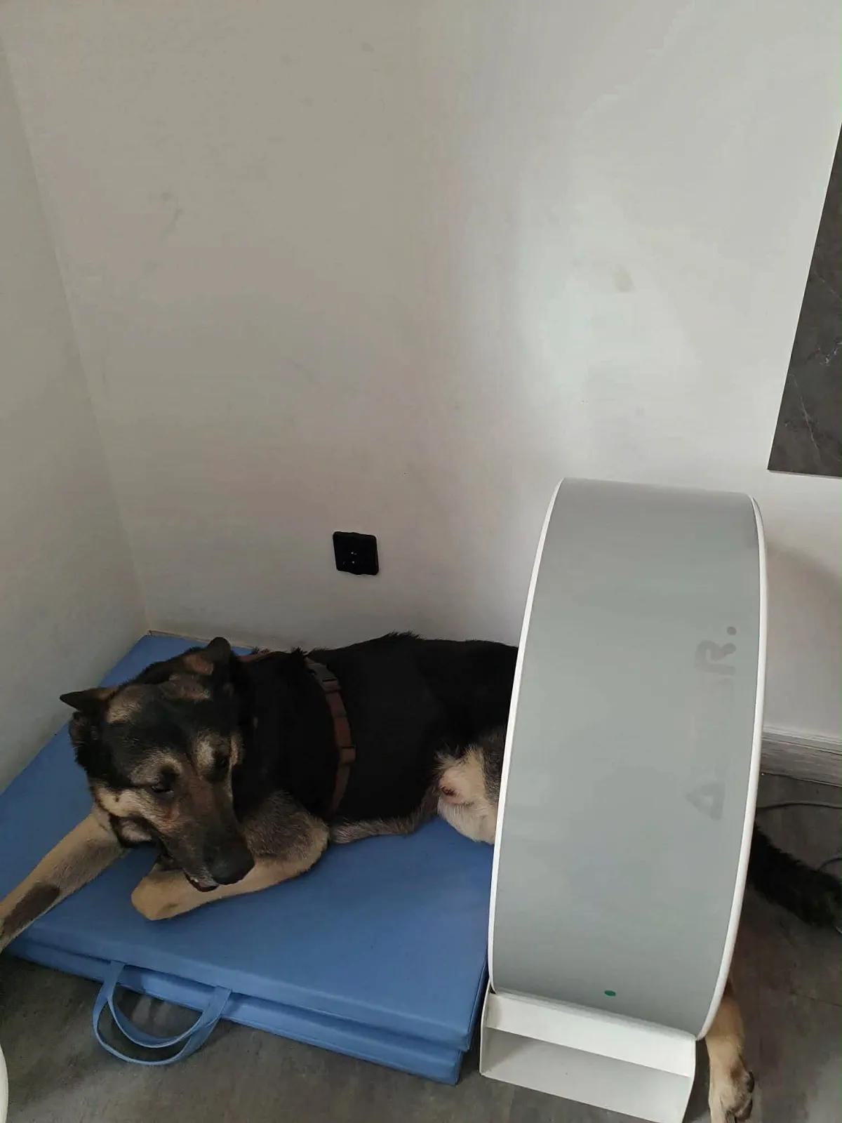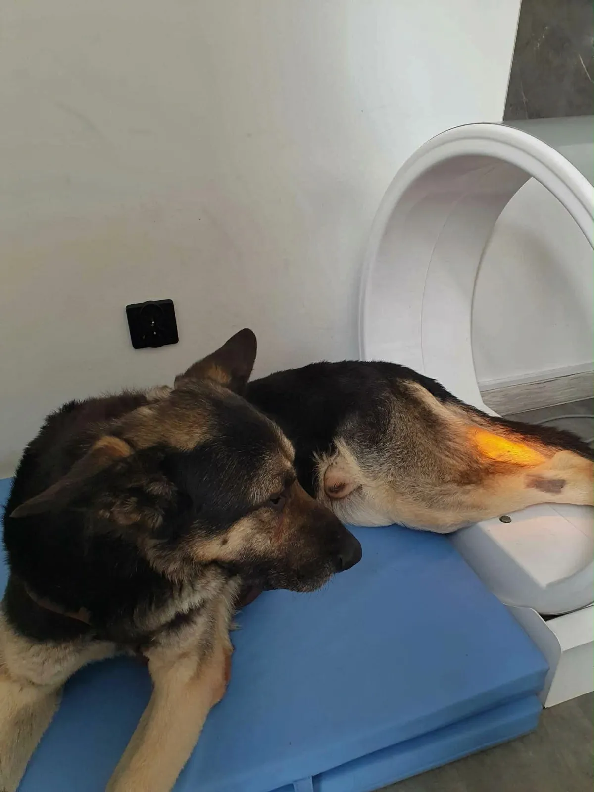 W marcu Magik regularnie jeździł na rehabilitację do pani Julii do Lubania (Fizjovita Rehabilitacja Zwierząt). Za nim już 9 wizyt, podczas których dzielnie pracował nad swoją sprawnością. Ćwiczył, korzystał z magnetoterapii i laseroterapii. Każde spotkanie to była ciężka praca - wzmacnianie mięśni, poprawa ruchu i walka o lepszy komfort życia. Magik radził sobie świetnie - skupiony, zaangażowany, chętny do współpracy. Smaczki i kontakt z człowiekiem były dla niego najlepszą motywacją